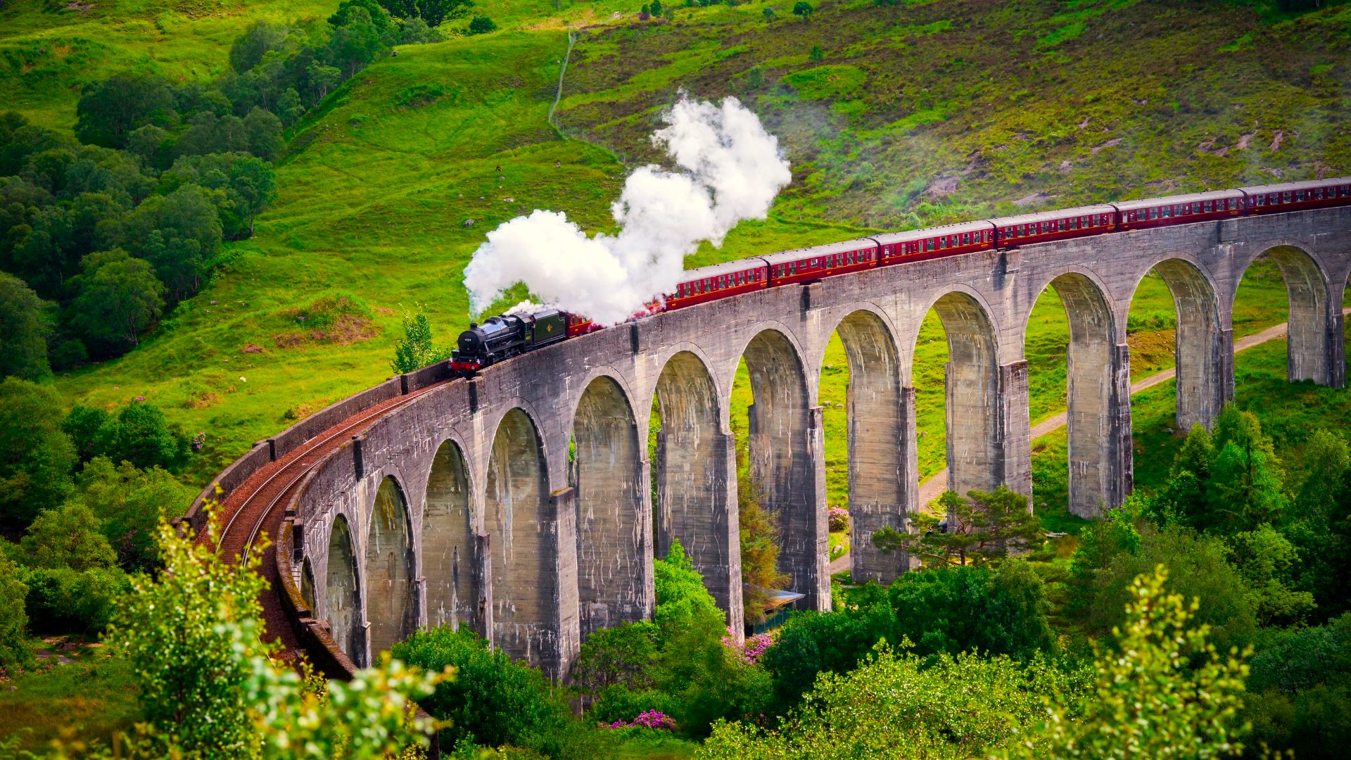 4.dzień – po śniadaniu przejazd w okolice miasteczka Glenfinnan, postój z widokiem na słynny wiadukt kolejowy, znany z wielu filmów m. in. z trzech części Harrego Pottera. Dalszy przejazd do Fort William położonego w Regionie Highlands zwanego „Outdoor Capital of the UK” oraz bramą do najwyższego szczytu Wielkiej Brytanii Ben Nevis. Następnie przejazd w okolice tak zwanych Schodów Neptuna – imponującego systemu kanałów ze śluzami stanowiącego część Kanału Kaledońskiego. Przejazd do Zamku Inveraray, siedziby Księcia Argyll, jednej z najważniejszych atrakcji turystycznych Zachodniej Szkocji. Zwiedzanie zamku, czas wolny na spacer po zamkowych ogrodach. Przejazd do hotelu, obiadokolacja i nocleg.