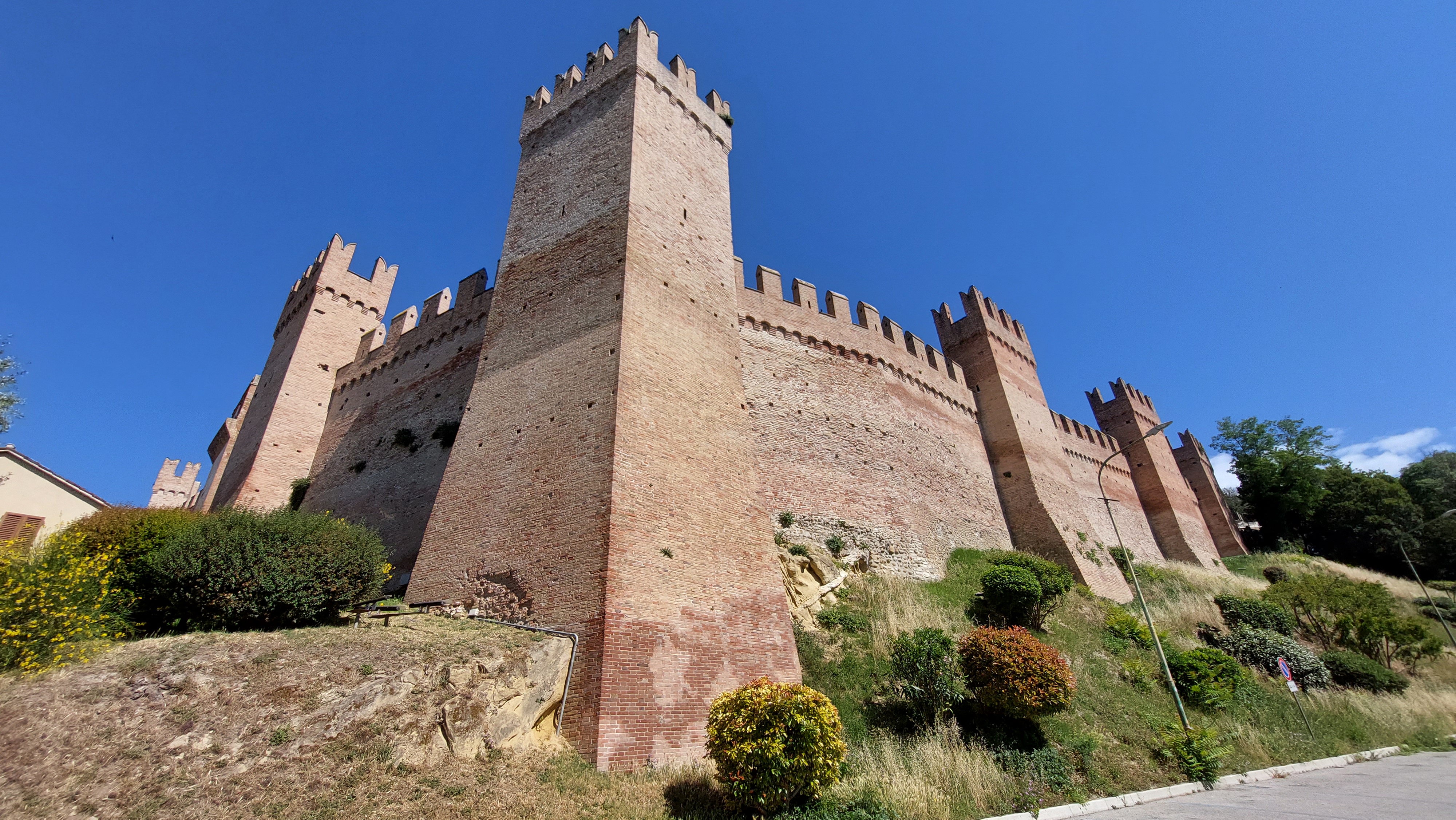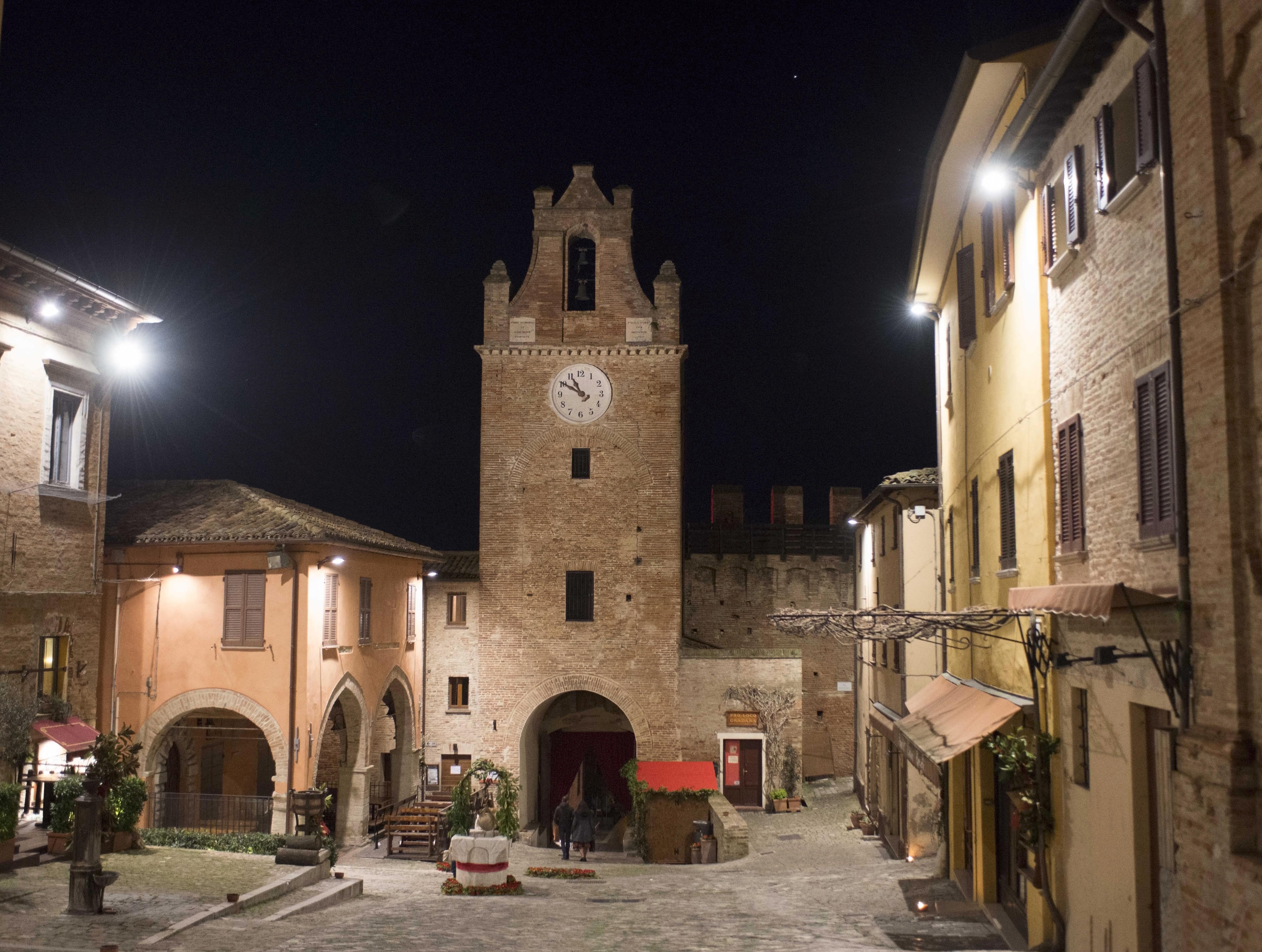 Gradara to niewielka miejscowość na terenie Regionu Le Marche w Prowincji Urbino - Pesaro, położona dosłownie kilka kilometrów od granicy z Emilią Romanią i tylko 5 kilometrów od wybrzeża Morza Adriatyckiego. Miasteczko zamieszkuje niecałe 5 tysięcy mieszkańców, a rocznie odwiedzane jest przez około 500 tysięcy turystów! Jest jednym z ulubionych miejsc wycieczkowych wczasowiczów odpoczywających w okolicy Rimini, Riccione, Cattolica, Gabbice Mare czy Pesaro. Jego popularność tkwi w średniowiecznej delikatności – borgo jest niewielkich rozmiarów z wąskimi, stromymi uliczkami, urokliwymi zaułkami, przyjemnym placem i imponującymi murami obronnymi, które zamykają w sobie cały ten średnowieczny skarb. Historia miasta jest ściśle związana z Rocca czyli górującą nad nim twierdzą, a także z możnymi rodami panującymi w tych okolicach: Malatesta, Sforza, Della Rovere czy Dei Mosca – to dzięki nim Gradara jest dzisiaj na liście I borghi più belli d’Italia.