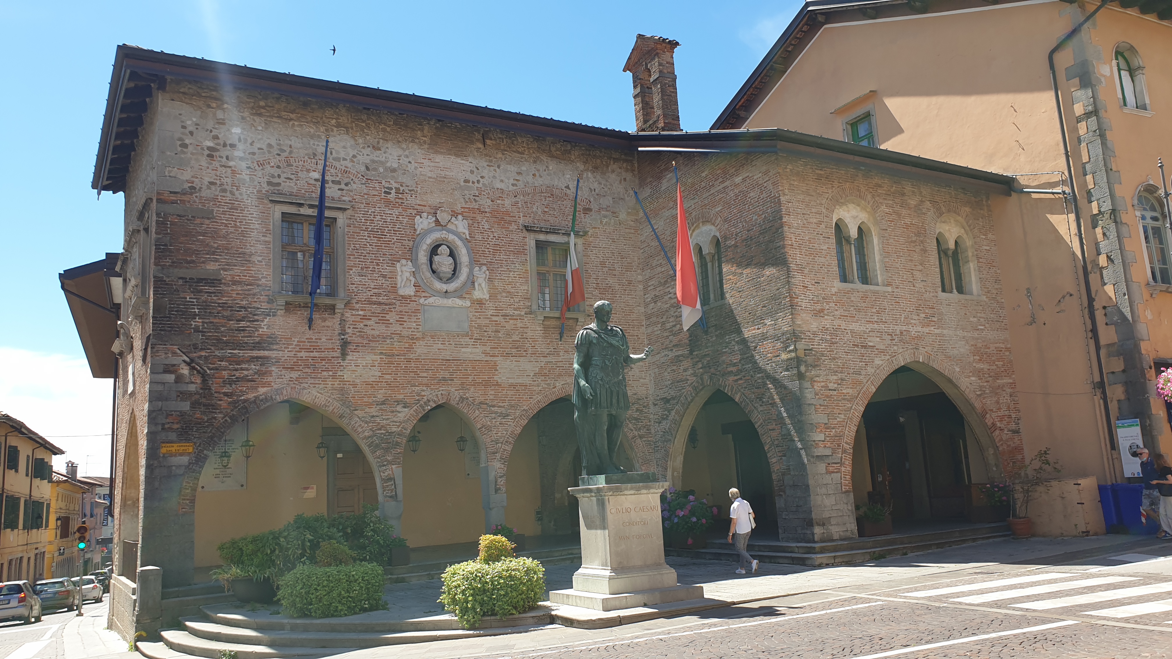 Naprzeciwko katedry - ratusz. Pochodzący z XV wieku Palazzo Comunale jest wprawdzie dużo mniejszym budynkiem, ale ma bardzo ciekawą formę. Przed nim pomnik Juliusza Cezara, kopia statuy z rzymskiego Wzgórza Kapitolińskiego.