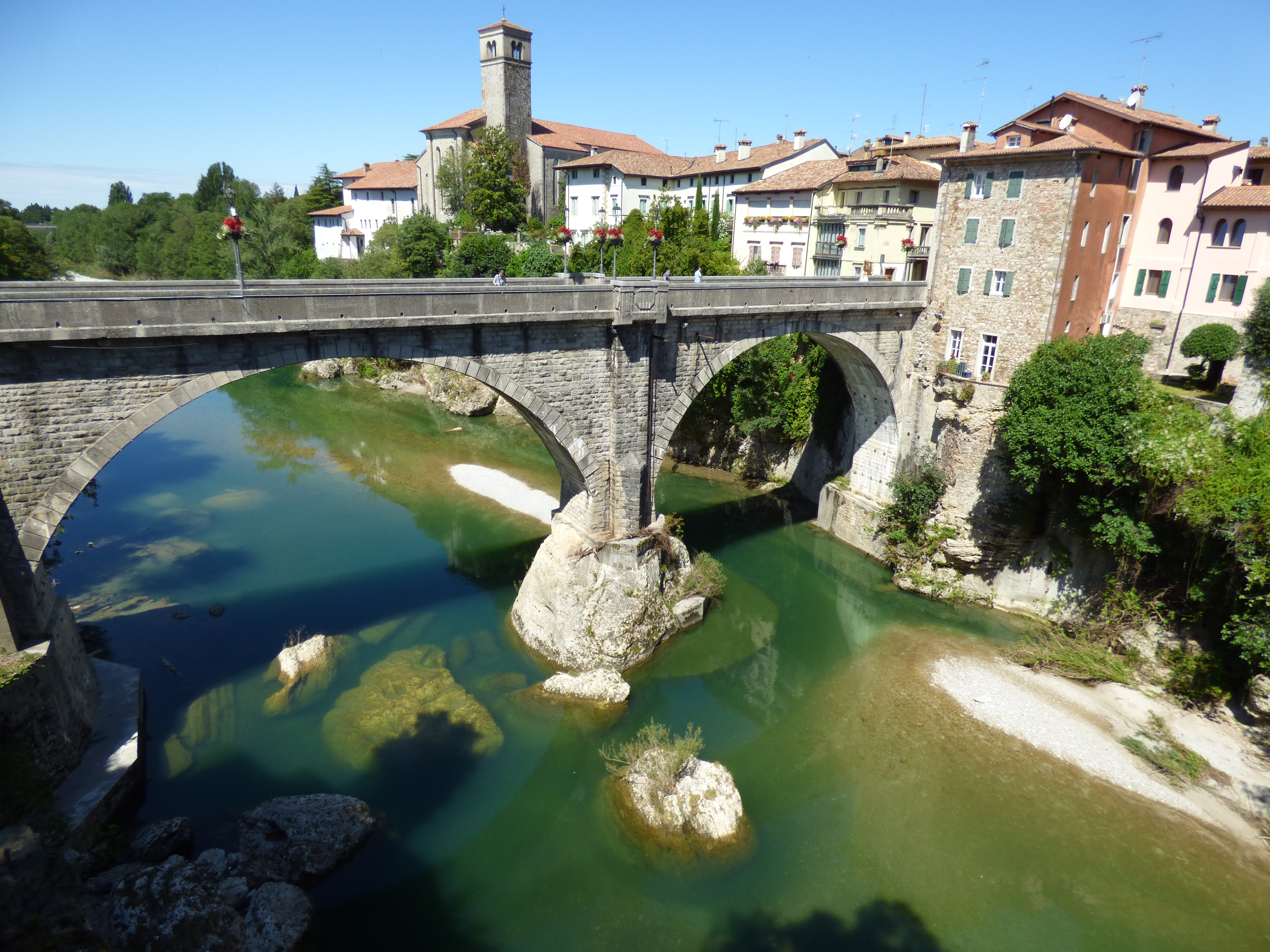 Cividale del Friuli to urokliwe miasteczko położone na stromych zboczach rzeki Natisone. To dopływ Rzeki Torre, która z kolei wpada do Soczy, aby ostatecznie skończyć swój bieg w Adriatyku pomiędzy Grado, a Monfalcone. Znakiem rozpoznawczym miasta jest stary kamienny Most Diabelski, którego dwa wysokie łuki wznoszą się nad krystaliczną wodą rzeki. Pierwszy most w tym miejscu wybudowany został w XV wieku, niestety zniszczony podczas I Wojny Światowej w oryginale do dzisiaj nie dotrwał. Środkowy filar mostu oparty jest na ogromnym głazie, który według tradycji na środek rzeki został wrzucony przez samego diabła – stąd nazwa mostu. Oba łuki mostu wznoszą się na wysokość ponad 20 metrów ponad lustrem wody. Cividale najładniej prezentuje się z tarasów widokowych naprzeciwko centrum. Miasto wzniesione jest na skale, nad samą rzeką, z bardzo skupioną zabudową i charakterystycznymi dzwonnicami Katedry oraz Kościoła św. Franciszka. Można zejść nad rzekę i pospacerować wytyczoną ścieżką z widokiem na Alpy Julijskie w oddali.