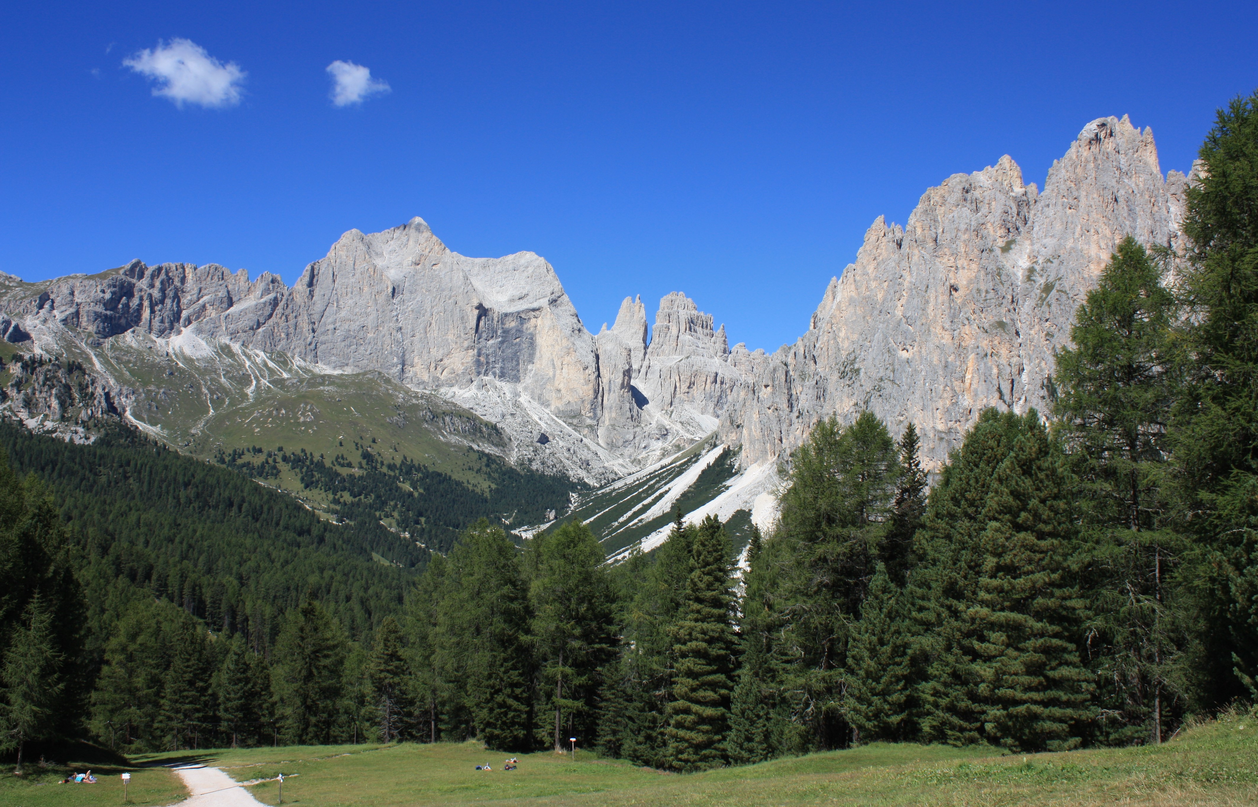 Niesamowita magia, która towarzyszy górom podczas wschodu i zachodu słońca wprowadza wszystkich widzów w zachwyt nad cudem natury. Miejscowa ludność od wieków przekazuje sobie dwie legendy, które nawiązują do tego zjawiska. Pierwsza z nich mówi o tym, że na Masywie Catinaccio mieszkał Król Laurino i miał tam piękny ogród różany. Król Laurino był władcą krasnali, które z głębi gór wydobywały kryształ, złoto i srebro. Oprócz takiego bogactwa Laurino posiadał również cudowne moce: magiczny pasek, który dawał mu siłę 12 mężczyzn oraz pelerynę niewidkę. Pewnego dnia Król Adygi zdecydował się wydać za mąż swoją córkę, przepiękną Księżniczkę Similde. Urządził więc przyjęcie na które zostali zaproszeni wszyscy książęta z okolicy, oprócz Króla Laurino. Ten jednak, mimo braku zaproszenia, postanowił zjawić się na przyjęciu – w pelerynie niewidce. Kiedy zobaczył księżniczkę od razu się w niej zakochał, porwał ją i zaczął uciekać na swoim koniu w kierunku Catinaccio. Wszyscy rycerze rzucili się w pogoń za Laurino i Similde. Kiedy dotarli do ogrodu różanego Laurino założył swój magiczny pas i zaczął walkę z konkurentami, ale było ich zbyt wielu i pomimo swojej siły zaczął przegrywać. Ubrał więc ponownie pelerynę niewidkę i schował się pomiędzy krzewy rów, te jednak poruszały się kiedy obok nich przechodził i zdradzały jego obecność. Kiedy Laurino zorientował się, że przeciwnicy mogą go złapać było już za późno – został uwięziony, zabrano mu magiczny pas i magiczną pelerynę. W desperacji na swoje ukochane róże które go zdradziły rzucił przekleństwo: „Ani w dzień ani w nocy żadne oko ludzkie nie będzie mogło was nigdy więcej podziwiać!”. Zapomniał jednak o wschodzie i zachodzie słońca i od tej pory miejsce to nabiera cudownych różanych barw tylko o świcie i wieczorem, w promieniach wstającego bądź zachodzącego słońca.