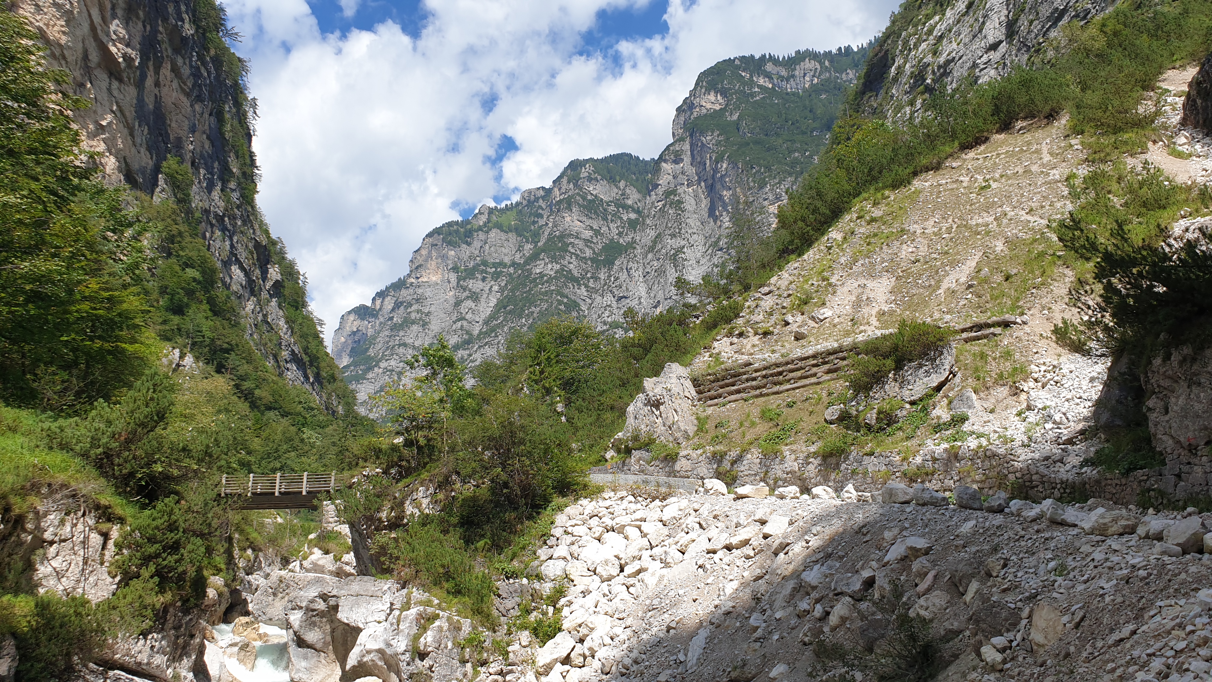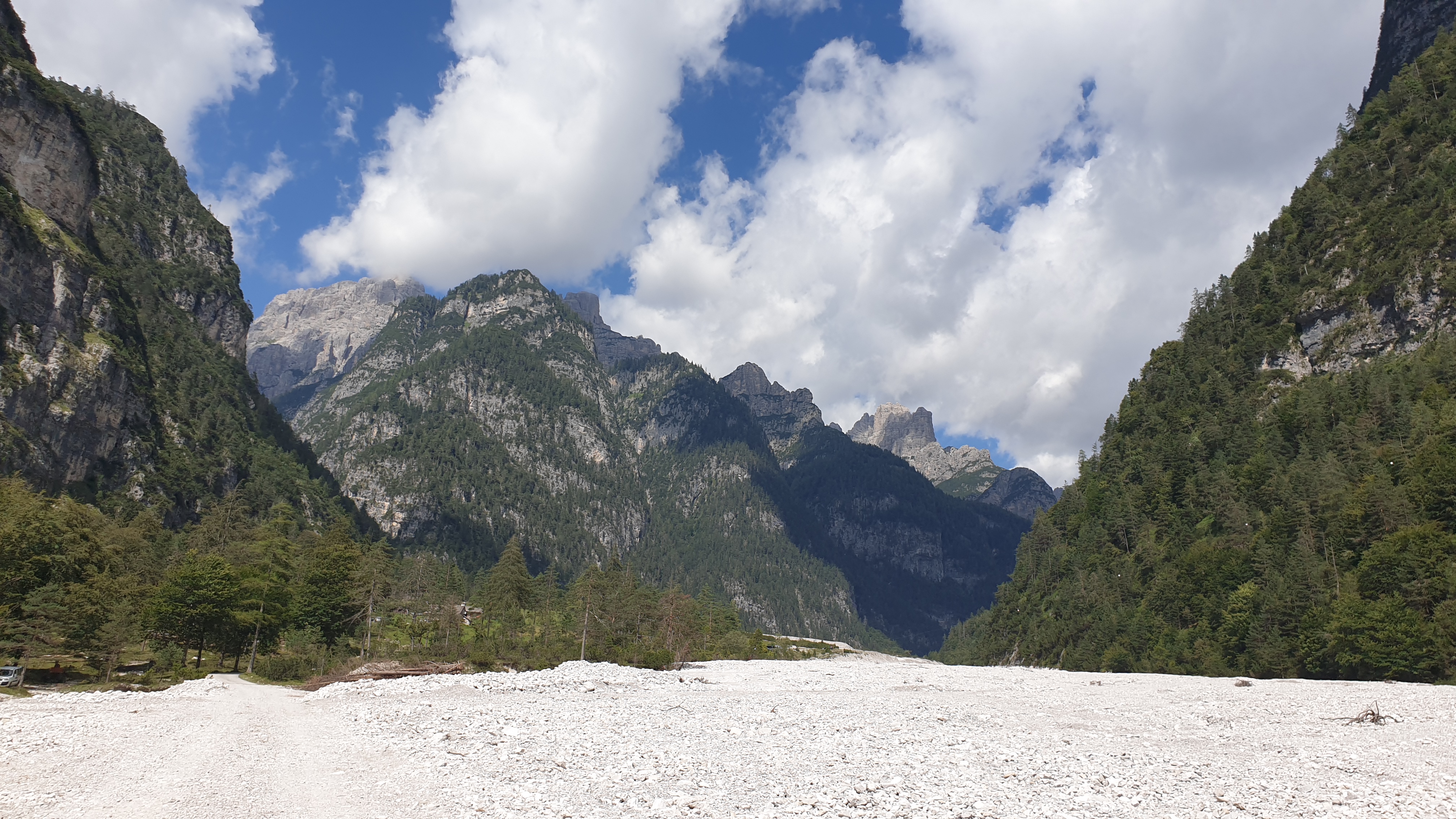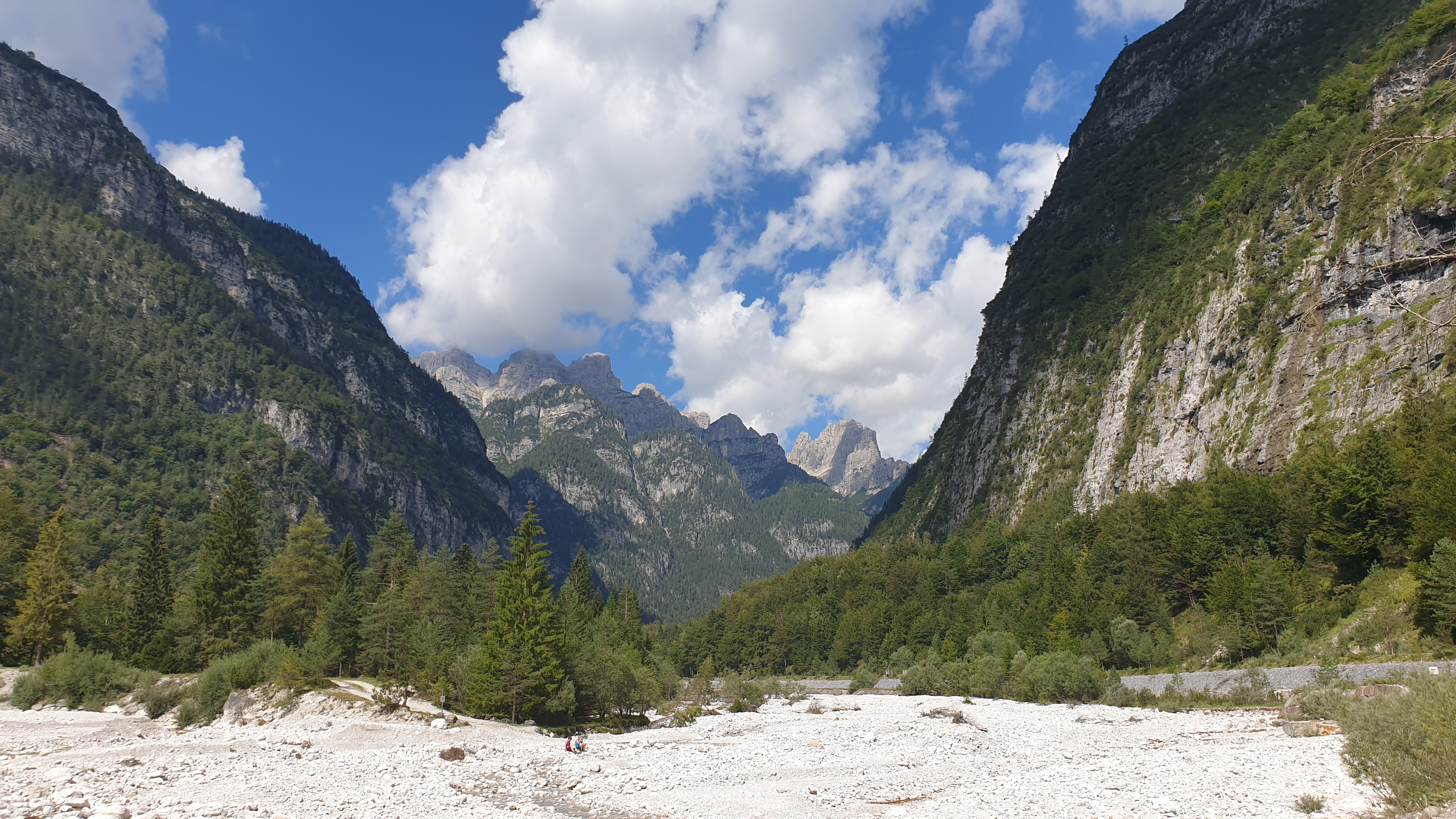 Najpopularniejszą doliną jest Val Cimoliana gdzie górski spektakl pozostawi widzów oszołomionych pięknem dziewiczego krajobrazu. To najpiękniejsze szczyty Dolomitów Friuli, które przybierają niejednokrotnie fantazyjne formy. Pośród najpopularniejszych szlaków należy wymienić il Sentiero delle Bregoline, który zaprowadzi nas w środek grupy górskiej Pramaggiore, z widokiem na niesamowite szczyty Spalti di Toro oraz Monfalconi. Szlak ten prowadzi również do najbardziej znanego widokowego punktu Dolomitów Wschodnich czyli do Campanile della Val Montanaia. To skalna iglica wysoka na 300 metrów, która jest ulubionym miejscem skalnych wspinaczek. Niedaleko znajduje się najstarsze schronisko tej części Dolomitów Rifugio Pordenone do którego można tak naprawdę dojechać samochodem. Val Cimoliana jest przejezdna na odcinku około 15 kilometrów od Cimolais. Droga jest wąska i kręta, miejscami asfaltowa, ale miejscami kamienista i trudna, ponieważ przejeżdża się korytami suchych rzek. Można dojechać do końca doliny i z parkingu podejść do Schroniska Pordenone, to tylko kilka minut spaceru. Jest to również bardzo dobra baza wypadowa na górskie szlaki, przede wszystkim do wspomnianego już Campanile della Val Montanaia. Dolina Cimoliana jest wprost niesamowita – cisza która nas otacza, różnorodność i zmienność krajobrazu, dzikie wapienne szczyty w oddali, różnokolorowe masywy skalne nad głowami. Miejscami szeroka, miejscami bardzo wąska. Czasami jedzie się przez las, a czasami szerokim korytem wyschniętej rzeki, gdzie świadomość miejsca przyprawia nas o dreszcze. Wyprawa dla odważnych i kierowców o mocnych nerwach, a wrażenia gwarantowane:)