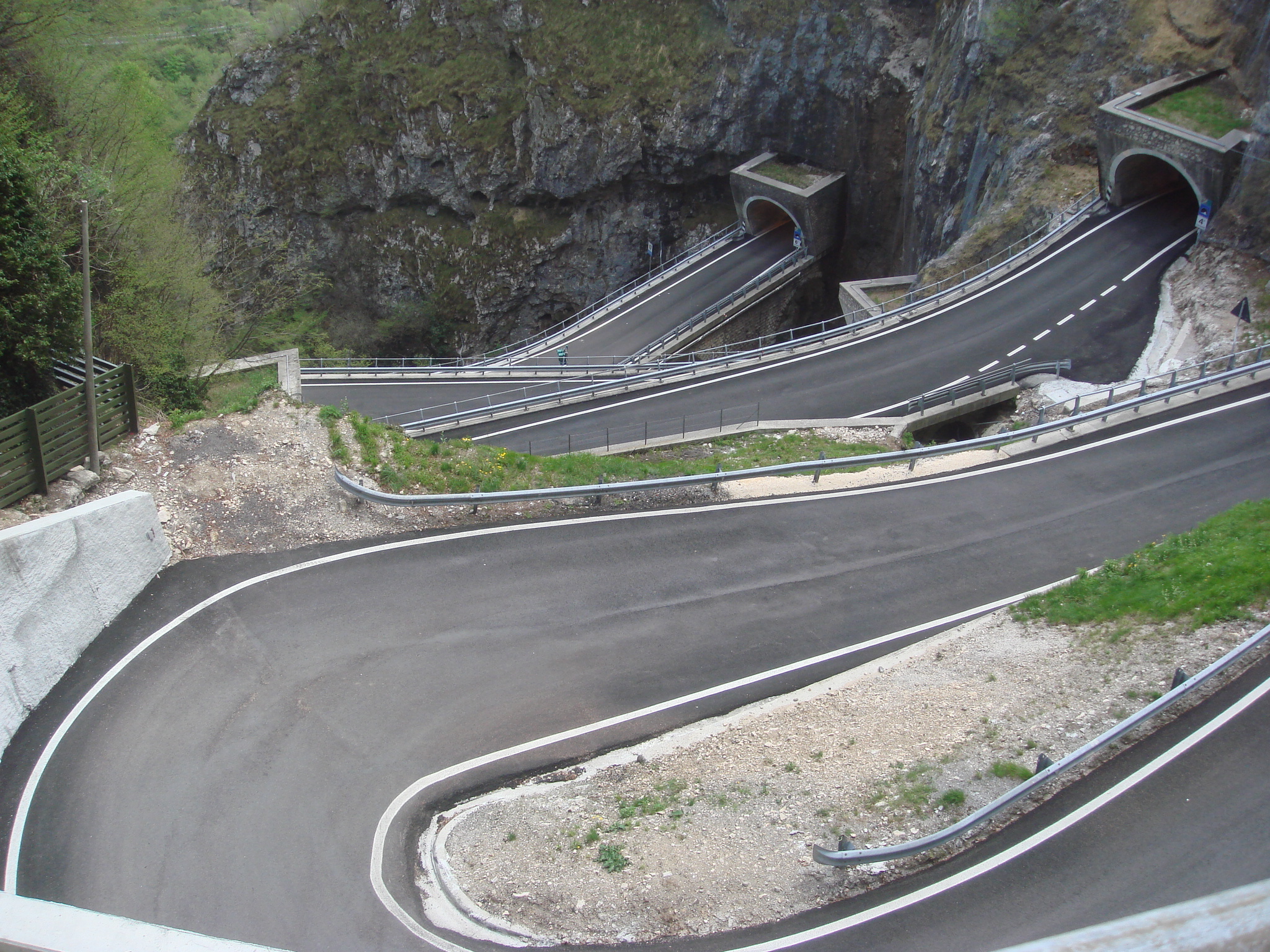 Passo San Boldo czyli Przełęcz Świętego Boldo to jedna z tych niesamowitych dróg, których znajdziemy całkiem sporo w górach włoskich. Droga z dreszczykiem, droga z emocjami, może będzie strach, może zachwyt, ale na pewno tak zwany efekt wow gwarantowany. Wygląda spektakularnie na zdjęciach, trochę dziwnie i zaskakująco. Nie wyobrażam sobie jak to jest przejechać te serpentyny za kierownicą samochodu, ale mam zamiar niedługo to sprawdzić. Trasa jest podobno trudna i ambitna, dla kierowcy opanowanego i rozsądnego, ale wrażenia zapewnione. Miłośnicy dwóch kółek upodobali sobie tę drogę – cykliści, którzy zmagają się ze swoimi słabościami i siłą mięśni pokonują podjazdy oraz motocykliści, którzy cieszą się każdym zakrętem i każdym przechyłam maszyny w szalonej jeździe – szalonej, ale bezpiecznej i mądrej, bo tylko tak tutaj można.
