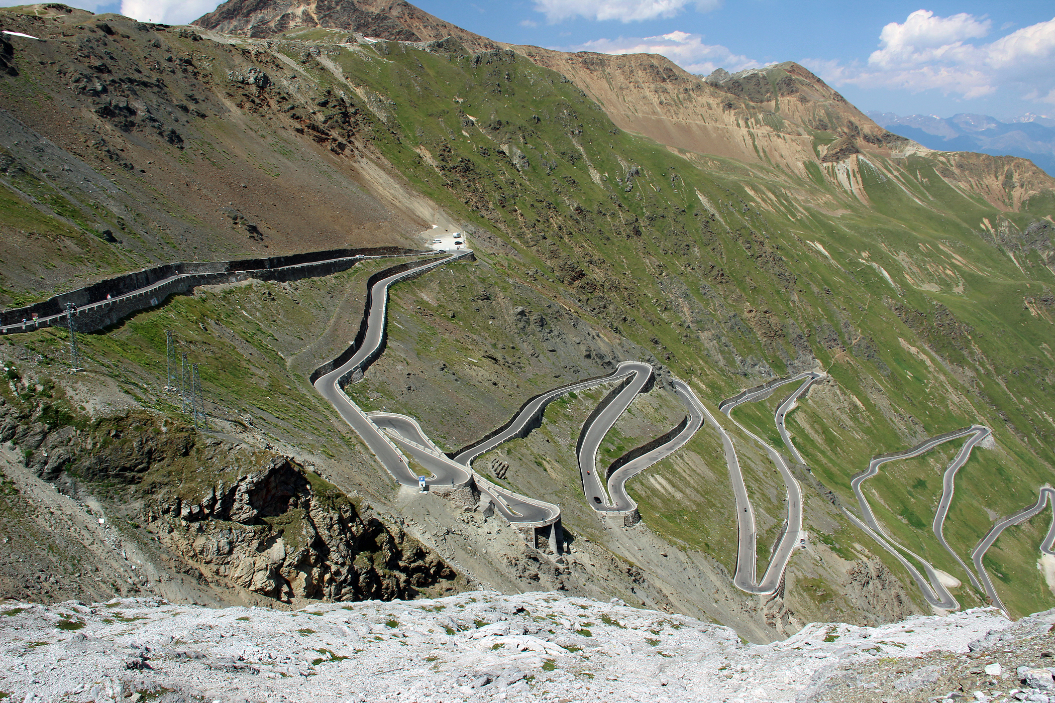 Najtrudniejszym odcinkiem jest fragment po stronie Alto Adige od miejscowości Prato allo Stelvio – przez około 26 km nachylenie podjazdu waha się od 5 do 12% na ostatnim kilometrze. Średnia różnica nachylenia drogi to 7,7% na odcinku 26 km, a różnica pokonanych poziomów przekracza 1800 metrów! Jest to więc nie lada wyczyn, ale satysfakcja każdego cyklisty, który dotrze na szczyt przełęczy jest niezmierna. Strona lombardzka jest trochę bardziej łagodna: różnica poziomów to 1500 metrów, a teren nachylony jest trochę łagodniej w stosunku do strony wschodniej od Alto Adige. Jest i trzeci sposób dotarcia na Passo dello Stelvio – od strony Szwajcarii z miasteczka Santa Maria Val Monastero.
