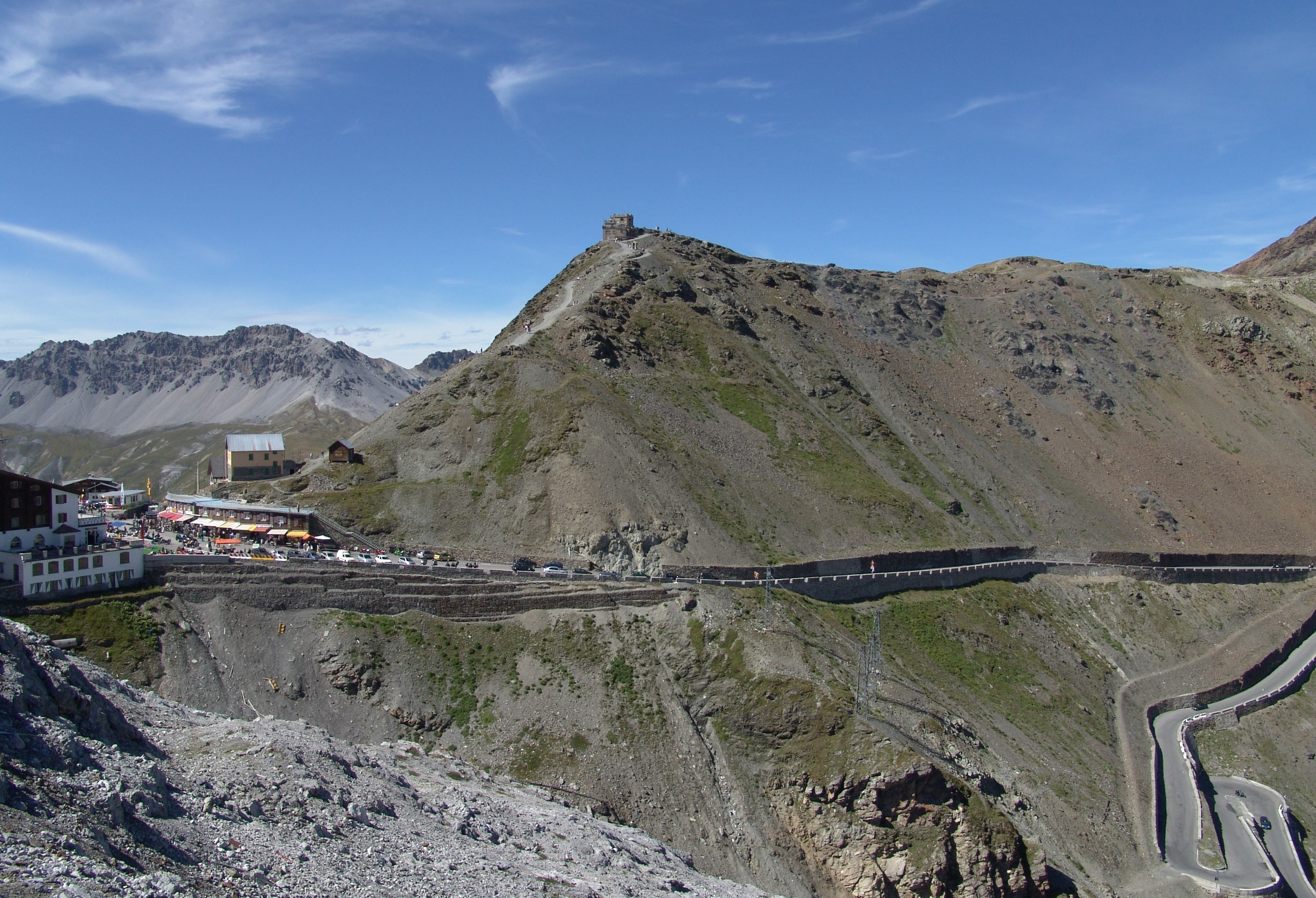 Bezpośrednio na Przełęczą Stelvio znajduje się Monte Garidaldi - góra o wysokości 2843 m n.p.m. nazywana również Górą Trzech Języków (Dreisprachenspitze w języku niemieckim) ponieważ jest granicznym punktem pomiędzy Włochami i Szwajcarią, a do roku 1918 stanowiła styk granic pomiędzy Italią, Szwajcarią i Państwem Habsburgów czyli Austro-Węgrami. Na szczycie znajduje się schronisko Rifugio Garibaldi.