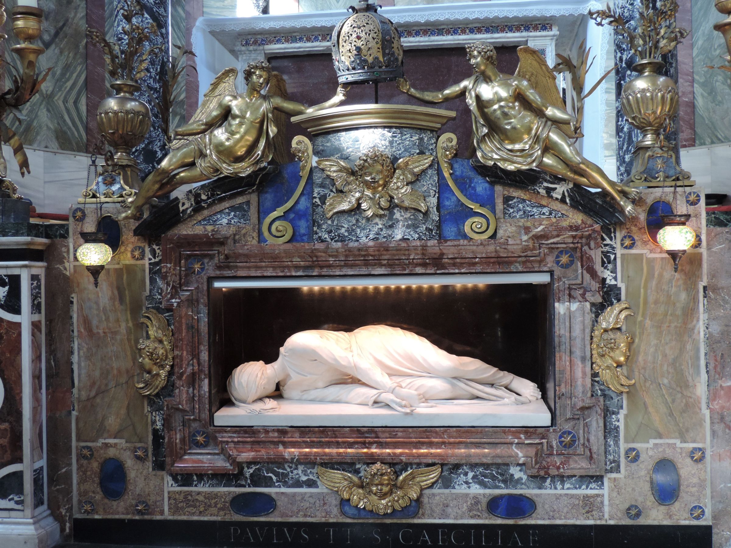 W 1599 roku, podczas prac rekonstrukcyjnych w Bazylice Św. Cecylii, jej grób został otwarty w obecności wielu świadków, między innymi Paolo Sfondrati, kardynała tytularnego bazyliki, kardynała Baroniusza oraz rzeźbiarza Stefano Maderno. Ten ostatni został zaproszony po stwierdzeniu nienaruszalności ciała i poproszony o sporządzenie rysunku Cecylii odzwierciedlającego pozycję, w której została odnaleziona. Na podstawie tego szkicu wykonał on później przepiękną marmurową rzeźbę, przedstawiającą Świętą Cecylię – leżącą na boku z twarzą zwróconą ku ziemi, na szyi widoczne ślady cięć mieczem zadane przez kata prawie 14 wieków wcześniej oraz palce: ułożone w charakterystyczny sposób symbolizujący Trójcę Świętą. Ta właśnie rzeźba zdobi grób Świętej do dzisiaj: w Bazylice św. Cecylii na Zatybrzu w Rzymie, a w Katakumbach Świętego Kaliksta znajduje się jej kopia.