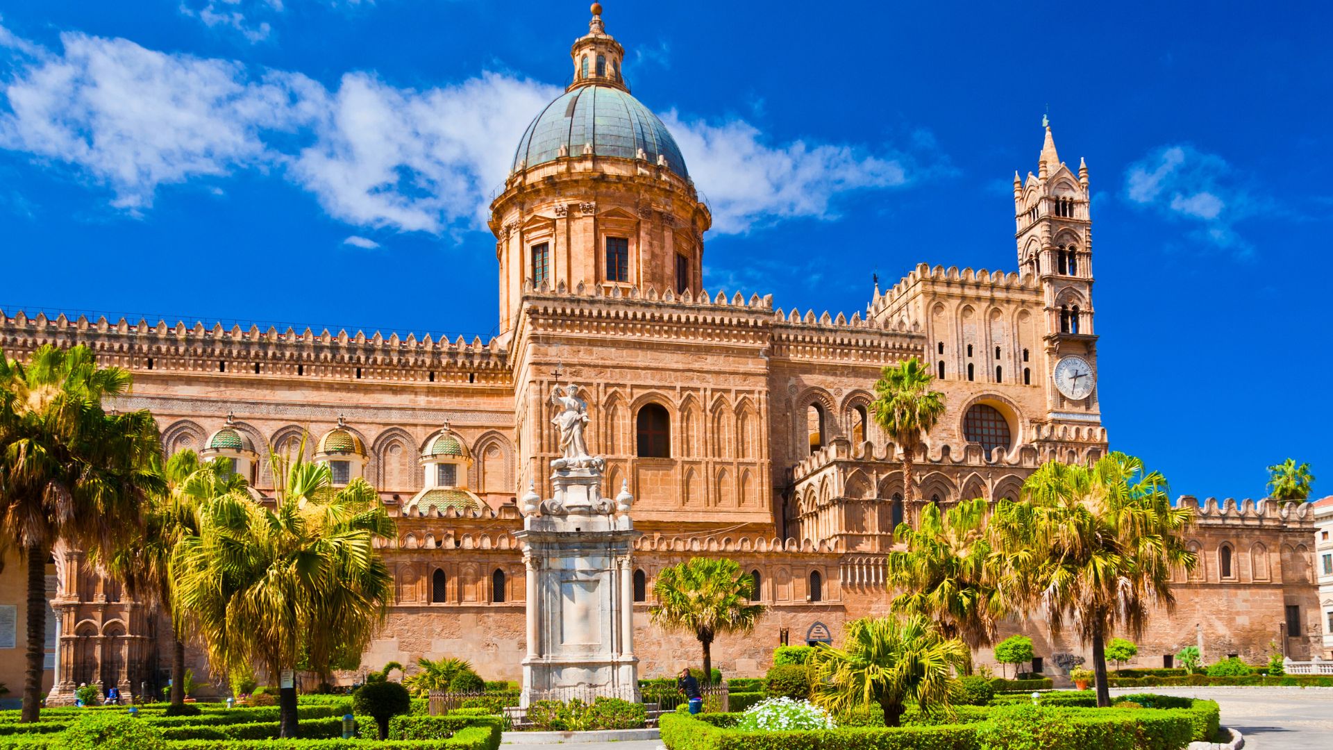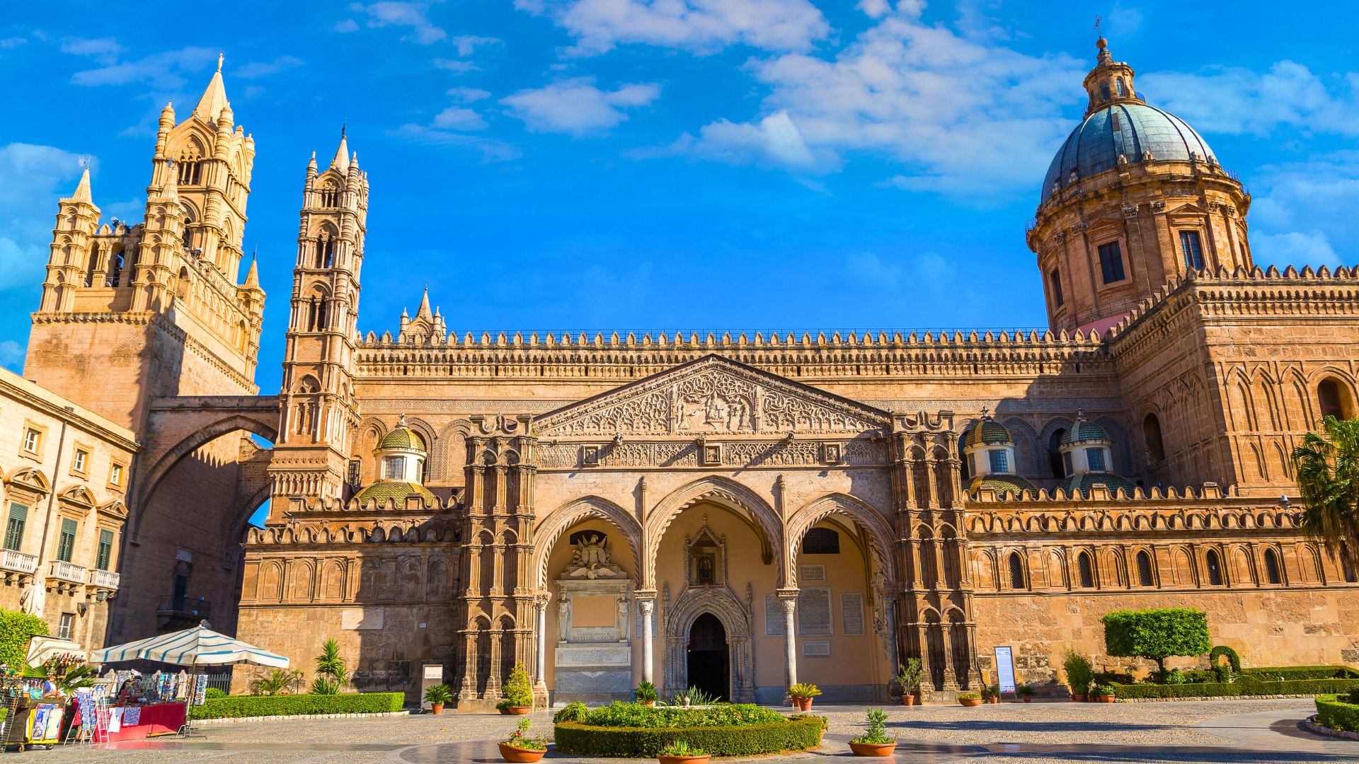 2.dzień – po śniadaniu przejazd do centrum Palermo, stolicy wyspy. Zwiedzanie z przewodnikiem lokalnym: Katedra, Plac Quattro Canti, Fontanna Wstydu, Teatro Massimo, jeden z targów Palermo na którym będzie można zakupić tradycyjne produkty sycylijskie: przyprawy, zioła, czekoladę z Modica czy krem pistacjowy. Dalszy przejazd do Monreale na Królewskie Wzgórze górujące malowniczo nad Palermo z cudownymi widokami na miasto i całą zatokę – zwiedzanie z przewodnikiem Katedry z najpiękniejszymi dekoracjami mozaikowymi. Powrót do hotelu, obiadokolacja i nocleg